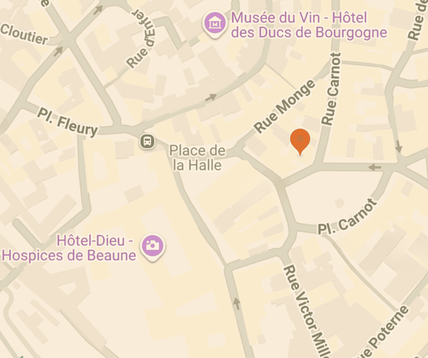 The train station is a 10 minute walk from the center of Beaune.