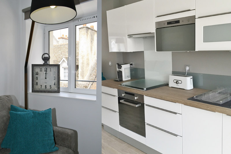 Fully renovated and air conditioned, this charming apartment provides a magnificent view over the rooftops of Beaune.